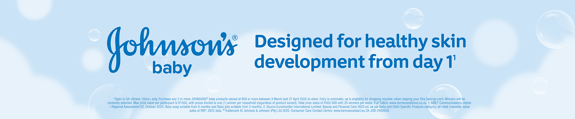 Buy any 2 Johnson’s® Baby products valued at R50 or more, and you could stand a chance to WIN weekly shopping vouchers of R1500, just swipe your Xtra Savings card and you could be 1 of 25 winners selected to win a share of R300 000 in shopping vouchers.